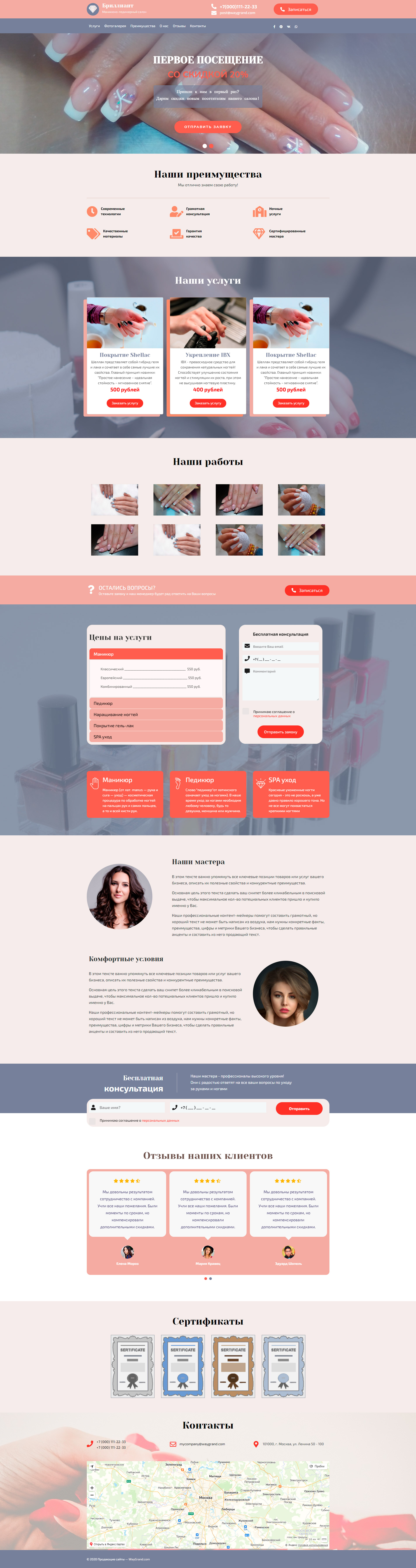Закажите готовый продающий сайт лендинг #1107201 в Обнинске за 1-3 дня «под ключ»: свёрстан, отрисован и готов к рекламе. Тематика шаблона «Салон маникюра и педикюра».