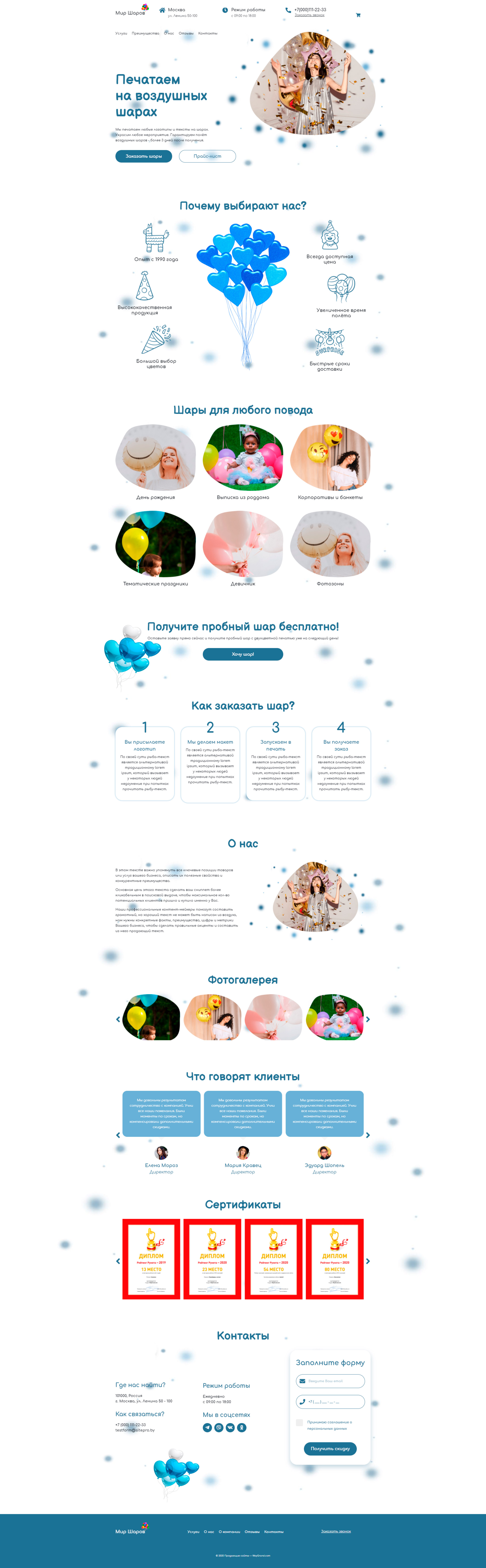 Закажите готовый продающий сайт лендинг #1826202 в Обнинске за 1-3 дня «под ключ»: свёрстан, отрисован и готов к рекламе. Тематика шаблона «Печать на воздушных шарах».
