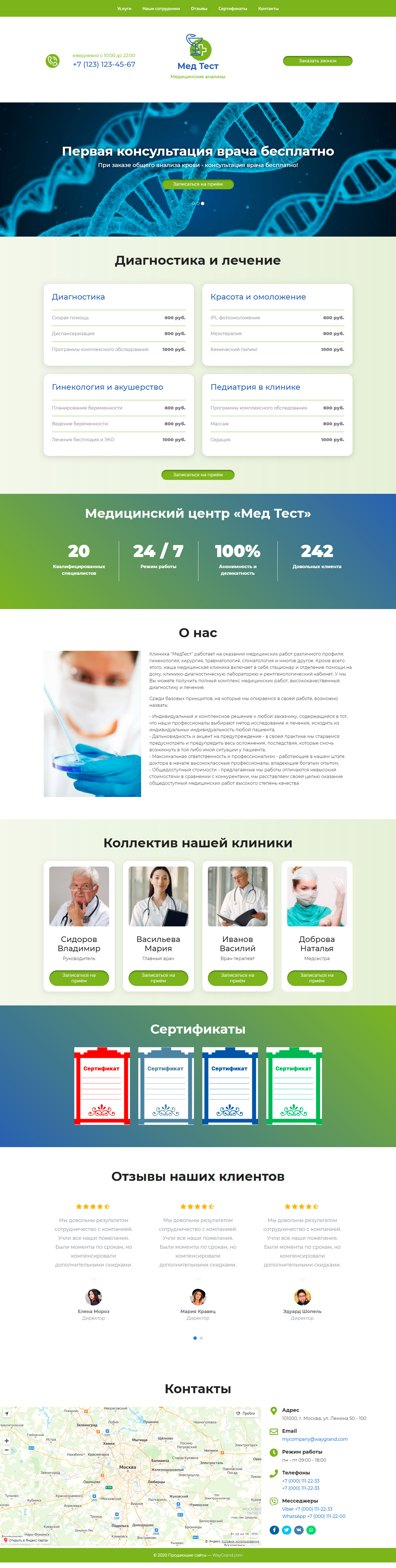 Закажите готовый продающий сайт лендинг #1025201 в Обнинске за 1-3 дня «под ключ»: свёрстан, отрисован и готов к рекламе. Тематика шаблона «Медицинские анализы».