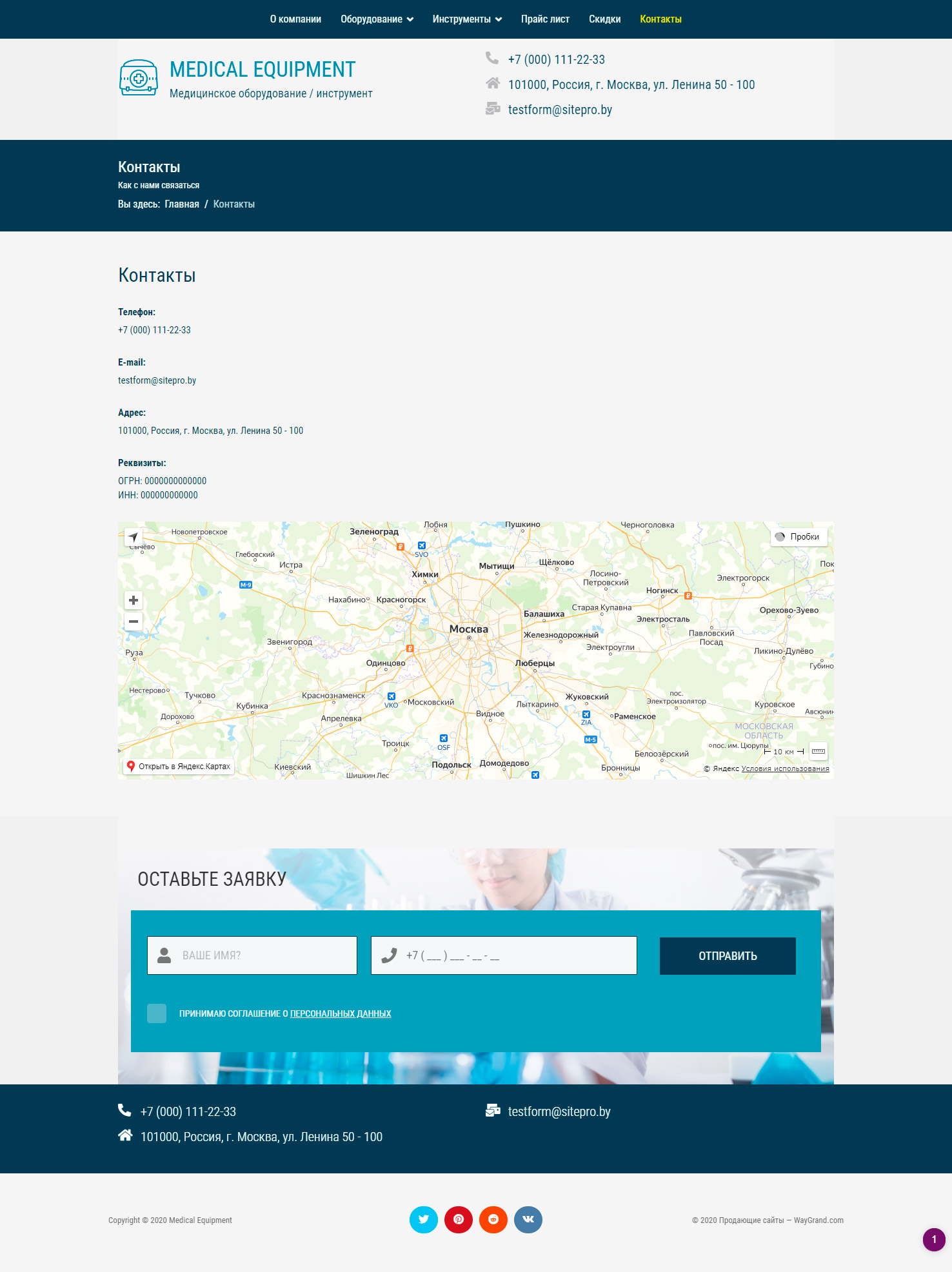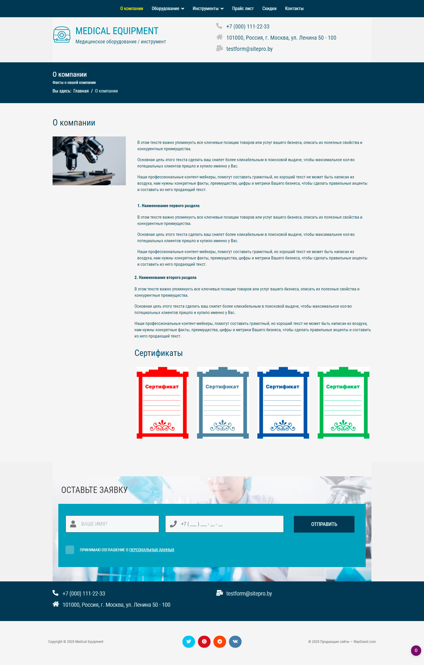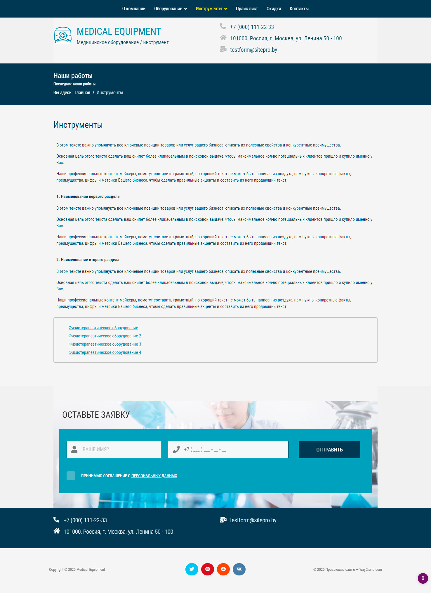 Закажите готовый продающий сайт визитка #1029301 в Обнинске за 5-7 дня «под ключ»: свёрстан, отрисован и готов к рекламе. Тематика шаблона «Медицинское оборудование / инструмент».