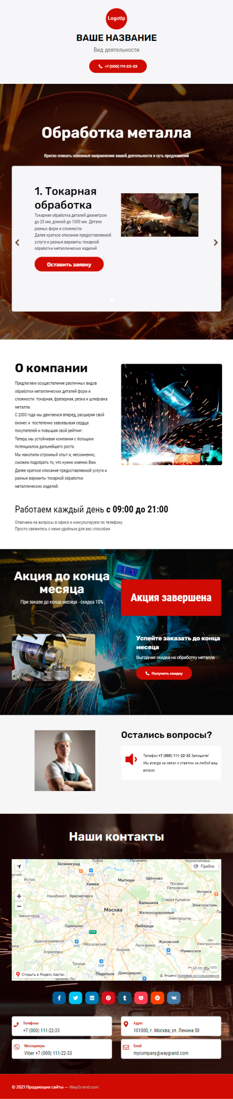 Закажите готовый продающий сайт визитка #1209101 в Обнинске за 5-7 дня «под ключ»: свёрстан, отрисован и готов к рекламе. Тематика шаблона «Обработка металла».