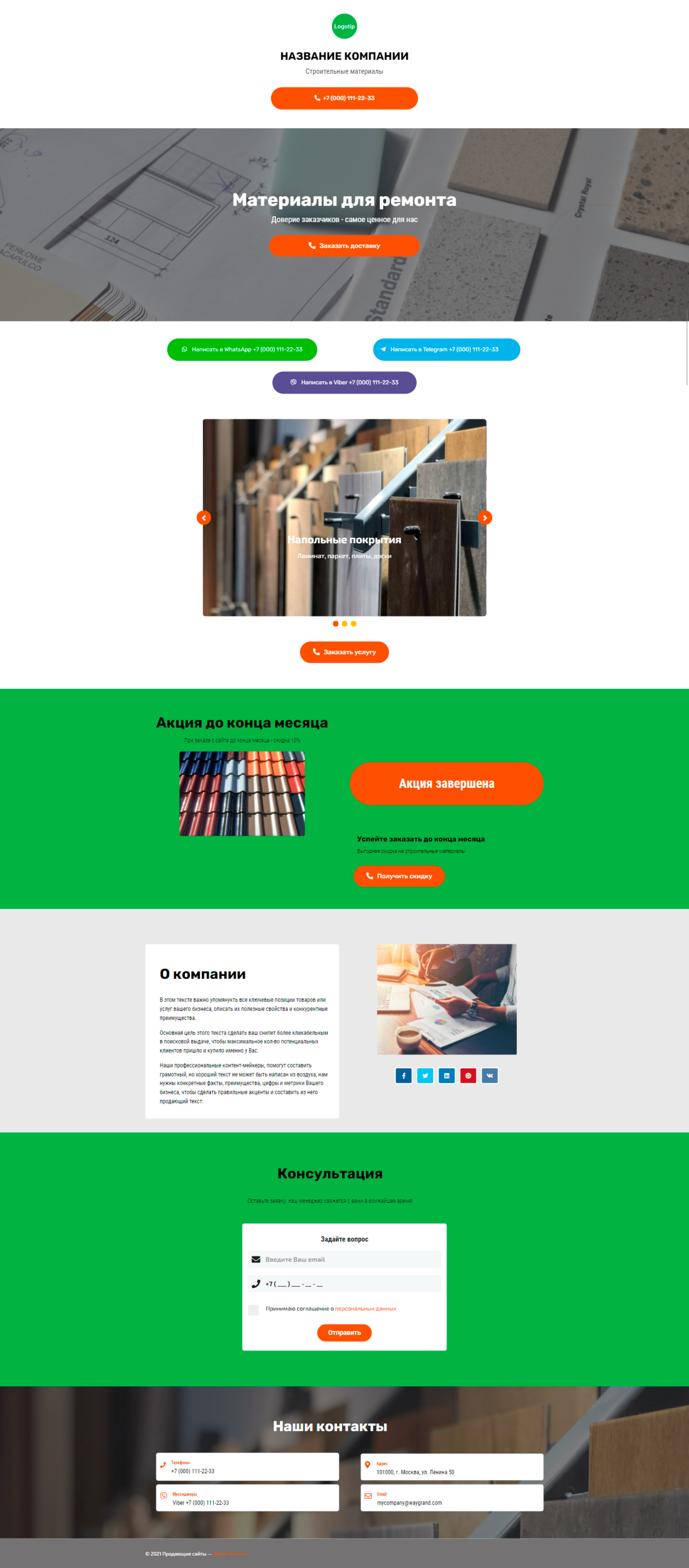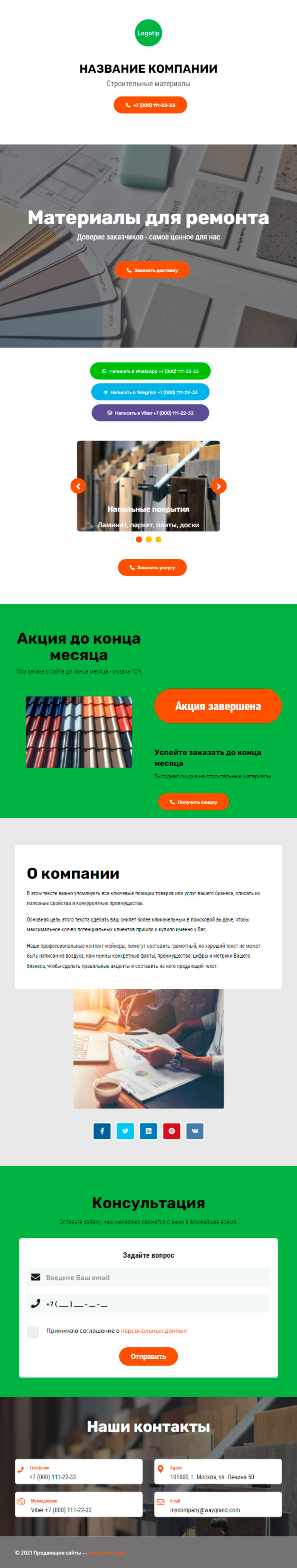 Закажите готовый продающий сайт визитка #2050101 в Обнинске за 5-7 дня «под ключ»: свёрстан, отрисован и готов к рекламе. Тематика шаблона «Строительные материалы».