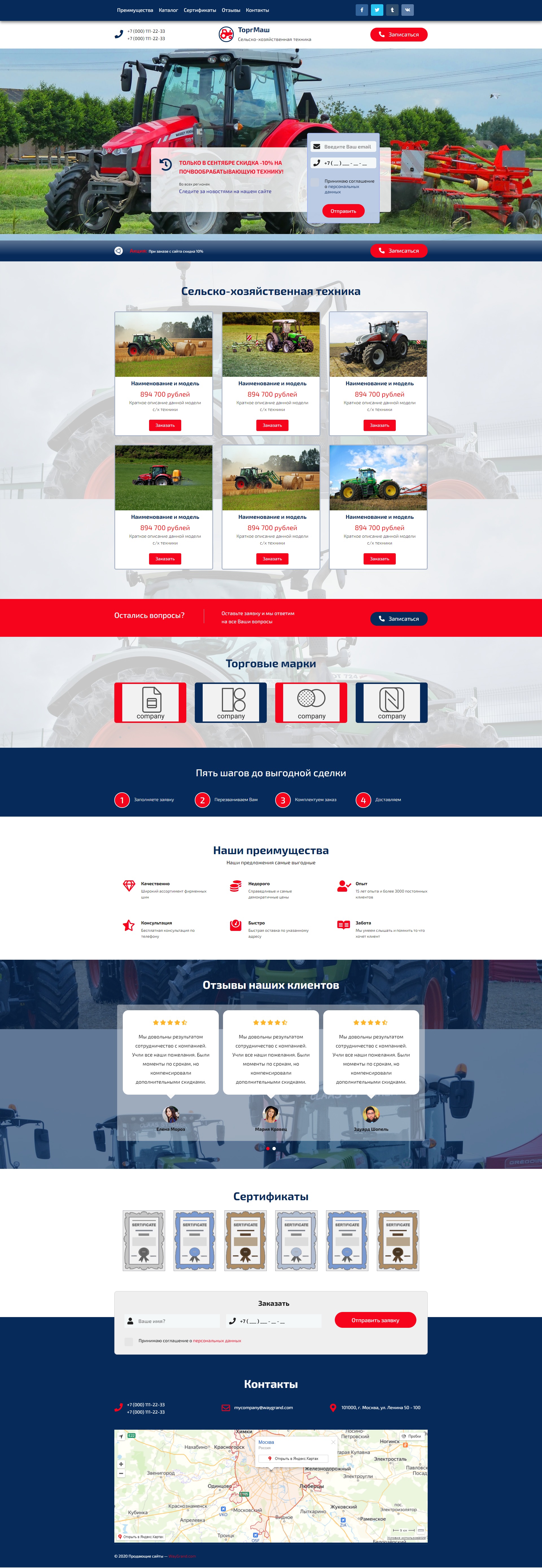 Закажите готовый продающий сайт лендинг #2553202 в Обнинске за 1-3 дня «под ключ»: свёрстан, отрисован и готов к рекламе. Тематика шаблона «Сельско-хозяйственная техника».
