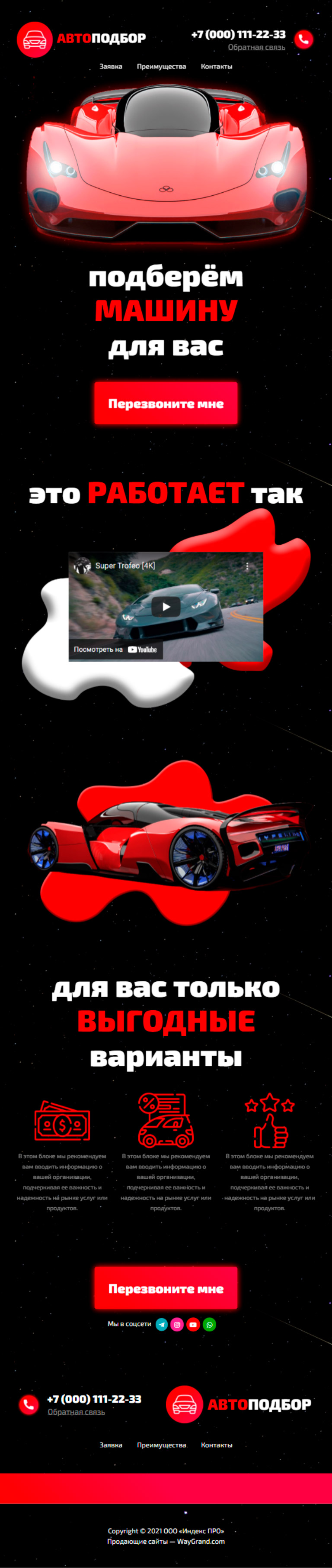 Закажите готовый продающий сайт лендинг #3275201 в Обнинске за 1-3 дня «под ключ»: свёрстан, отрисован и готов к рекламе. Тематика шаблона «Автоподбор».