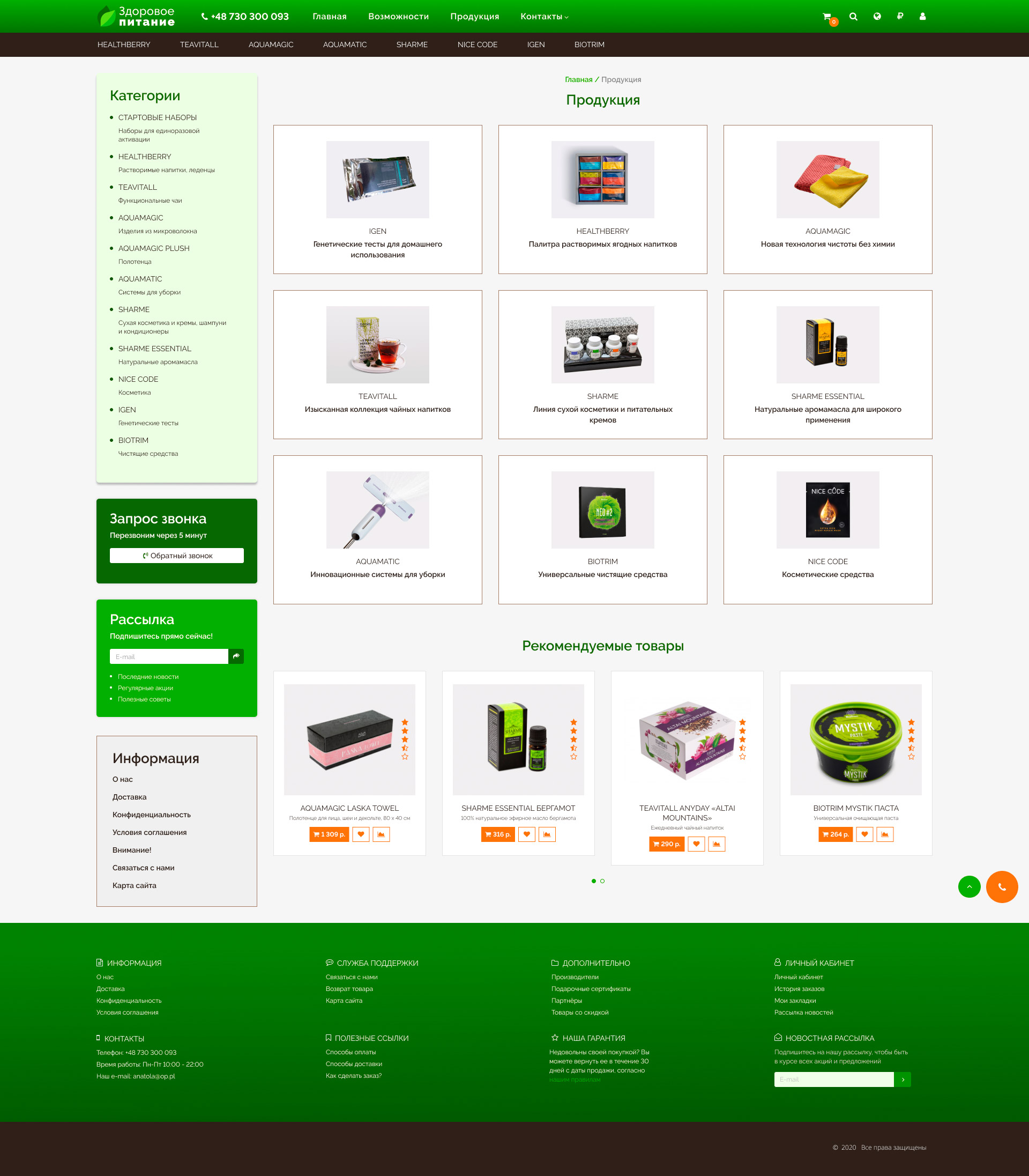 - Блоки "Категории", "Рекомендуемые", форма "Рассылка"