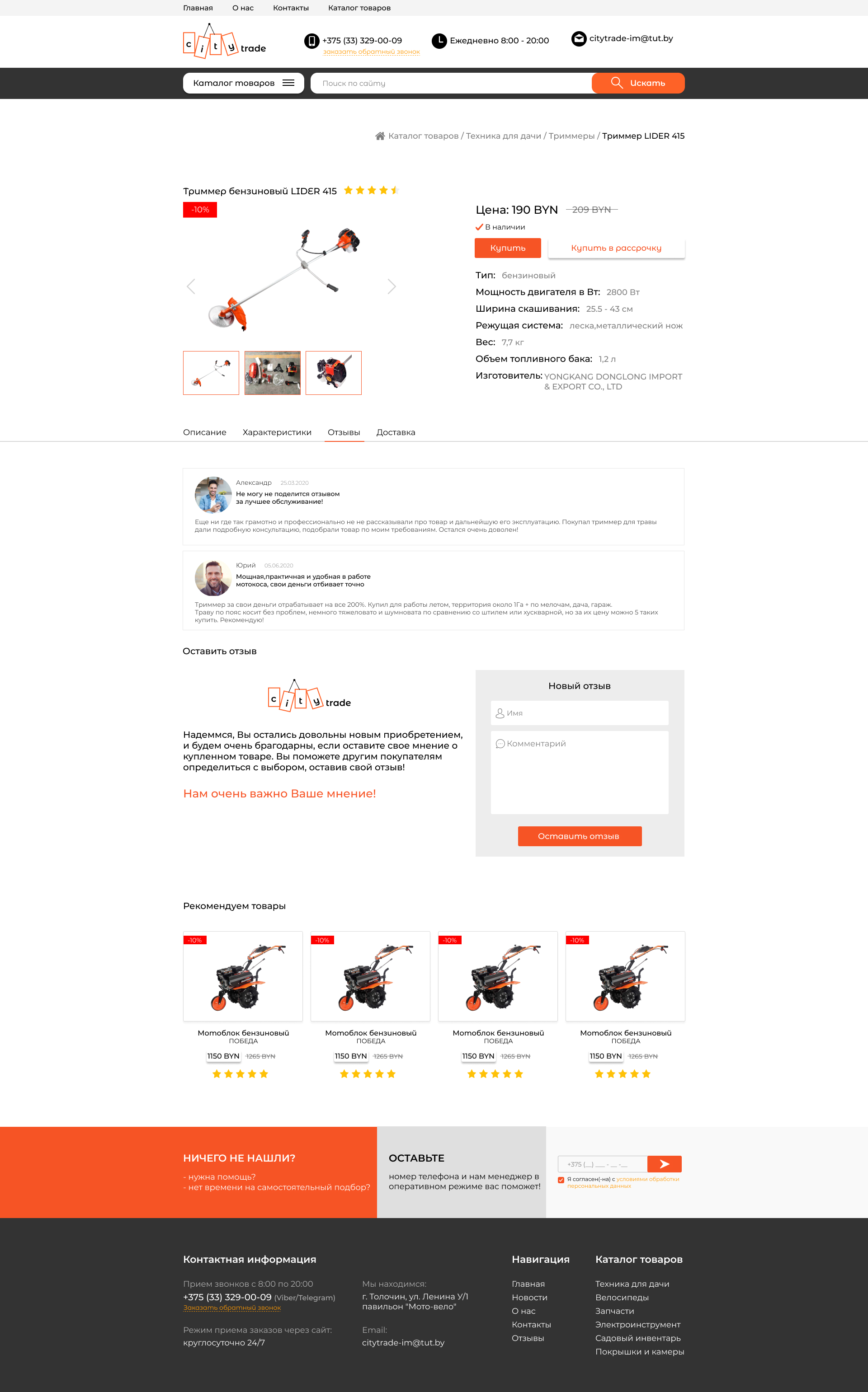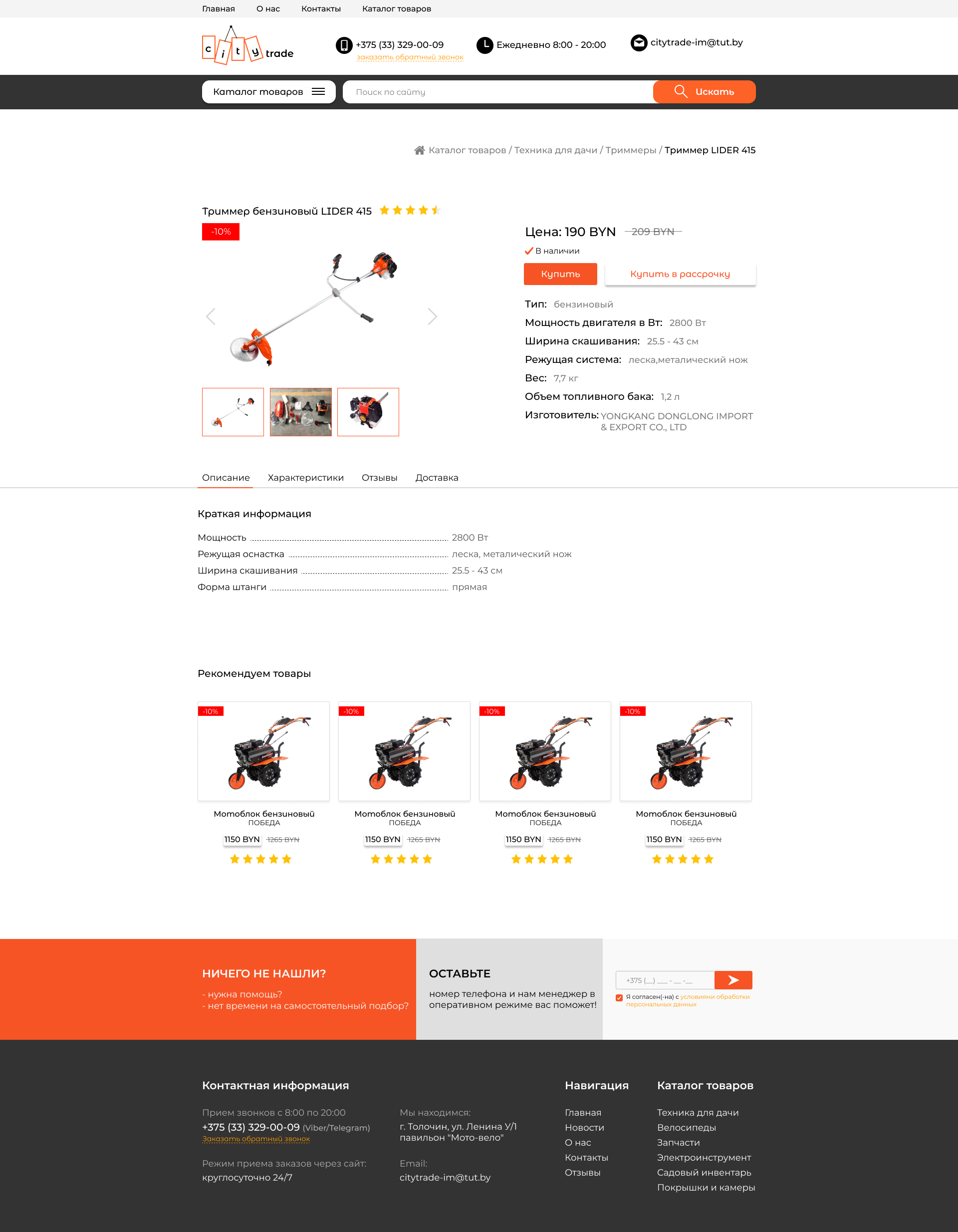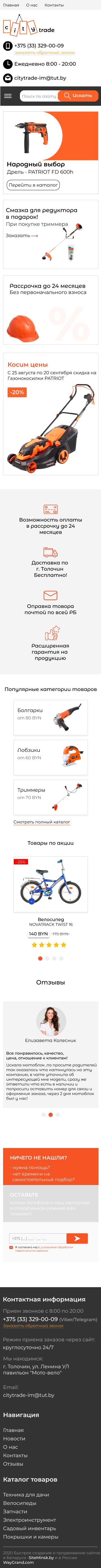 Закажите готовый продающий сайт визитка #281 в Обнинске за 5-7 дня «под ключ»: свёрстан, отрисован и готов к рекламе. Тематика шаблона «Розничная продажа садовой техники, велосипедов».