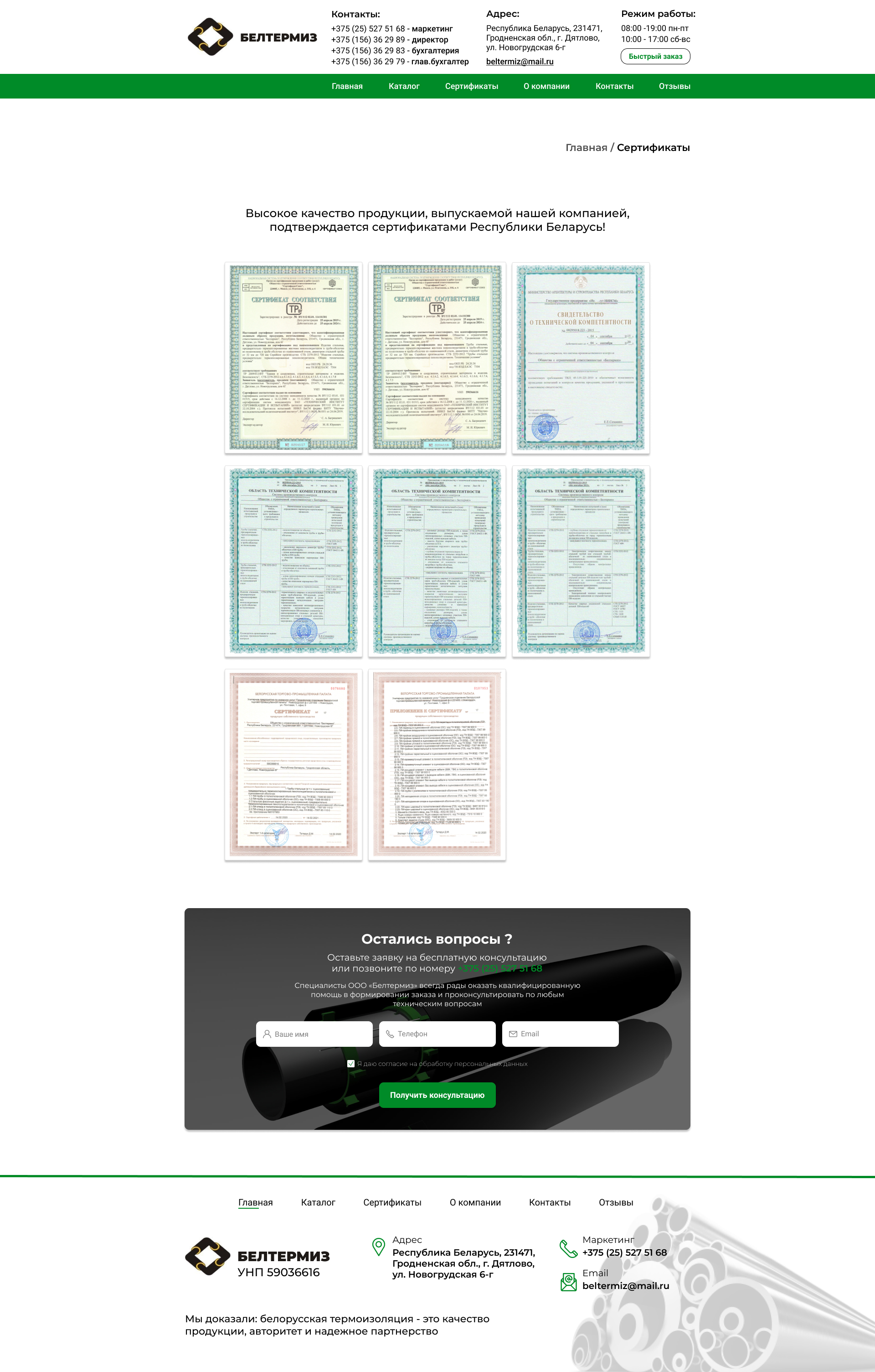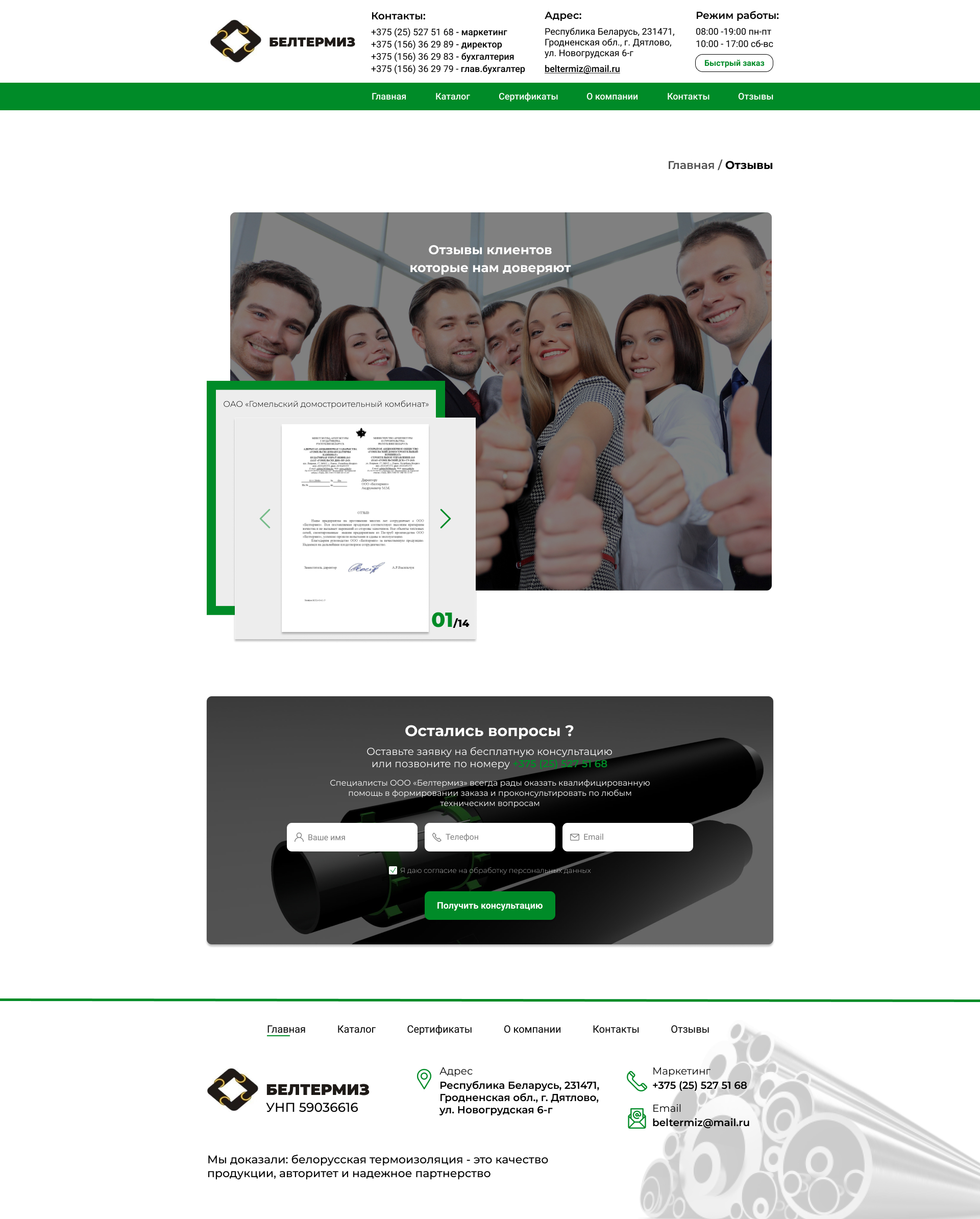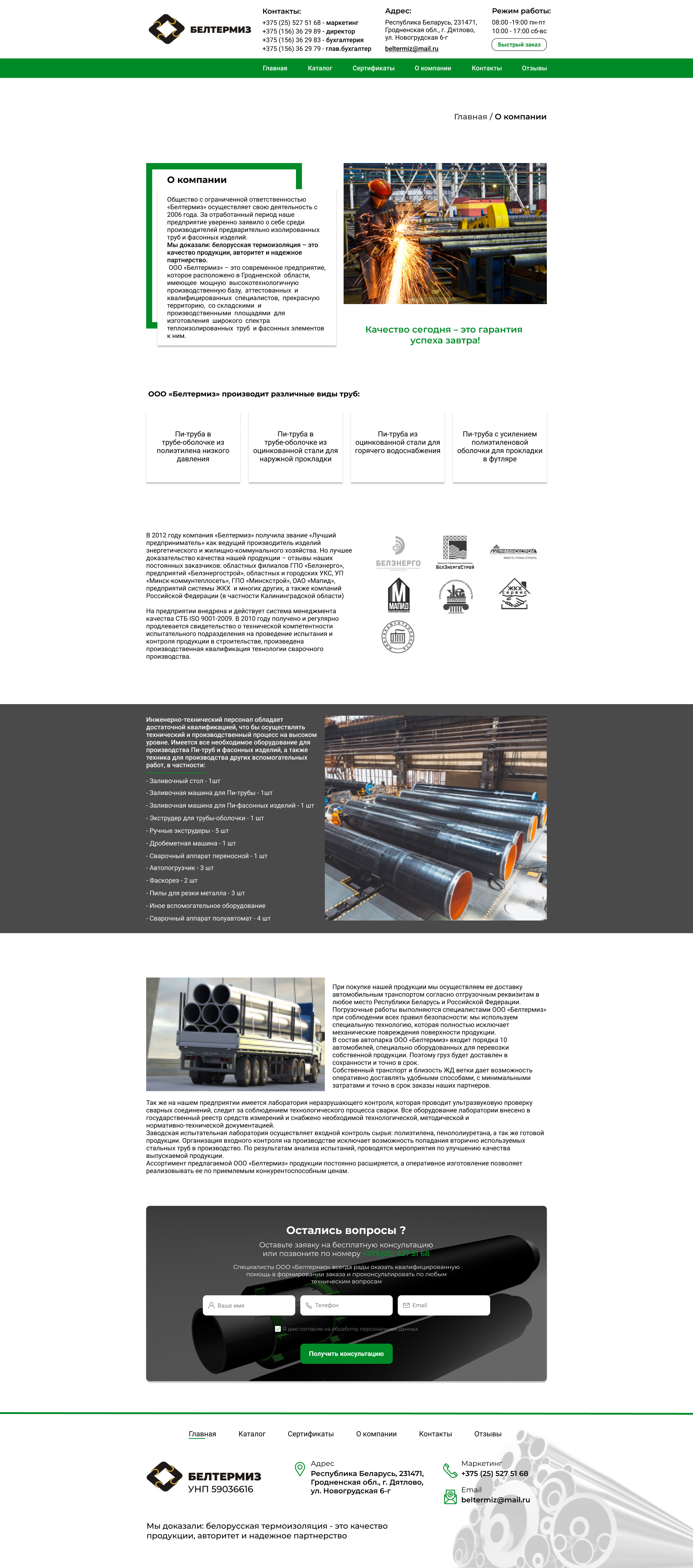 Закажите готовый продающий сайт визитка #141 в Обнинске за 5-7 дня «под ключ»: свёрстан, отрисован и готов к рекламе. Тематика шаблона «Производство ПИ-труб».