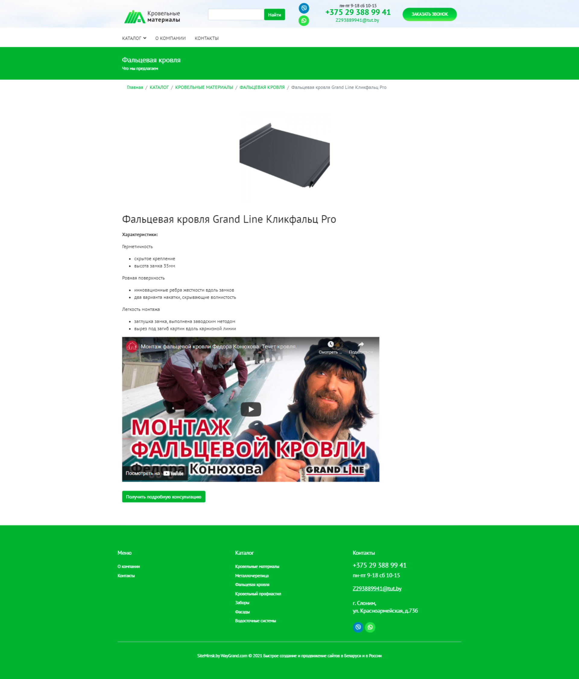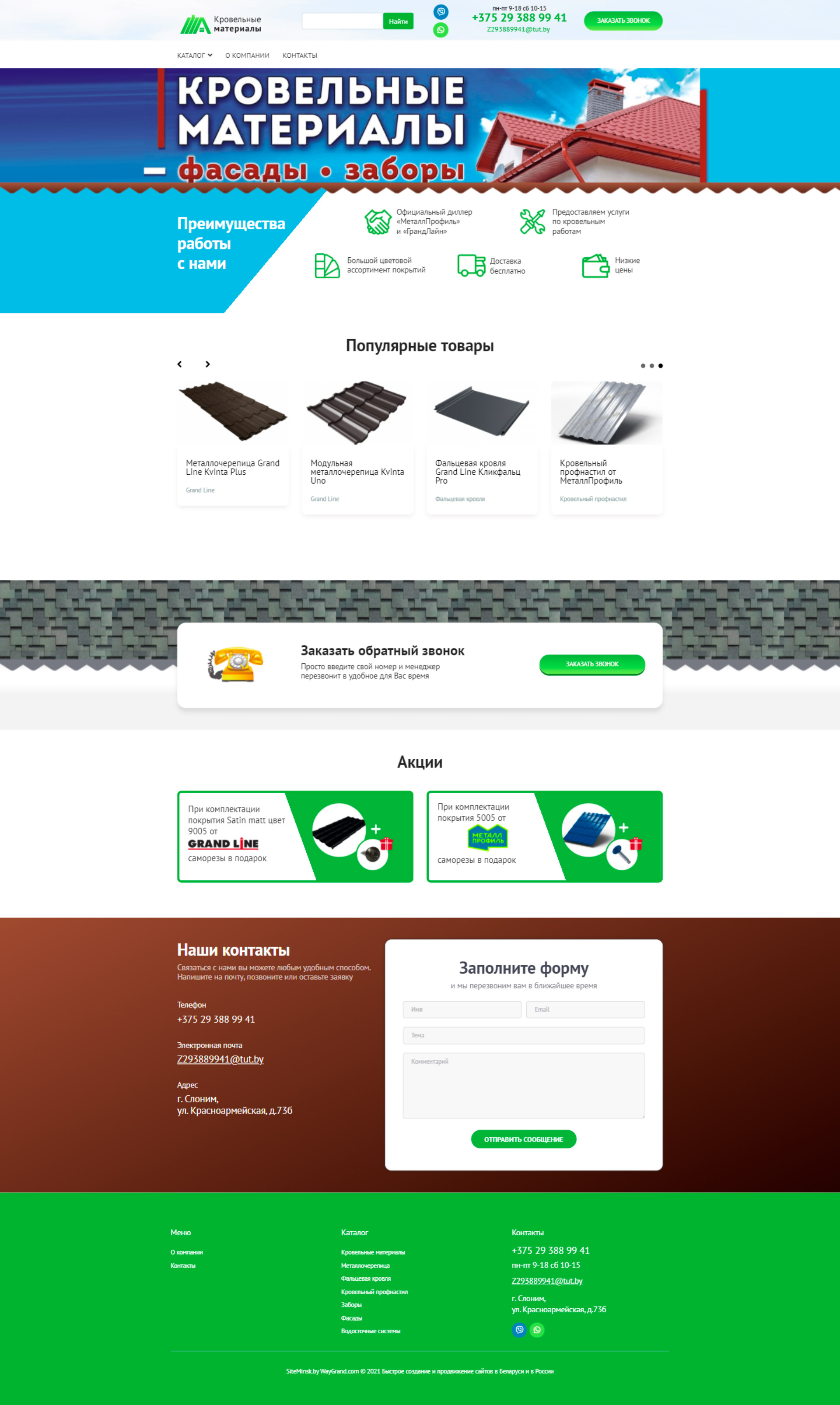 Закажите готовый продающий сайт визитка #324 в Обнинске «под ключ» на waygrand по выгодной цене: свёрстан, отрисован и готов к рекламе. Тематика шаблона «Кровельные материалы».