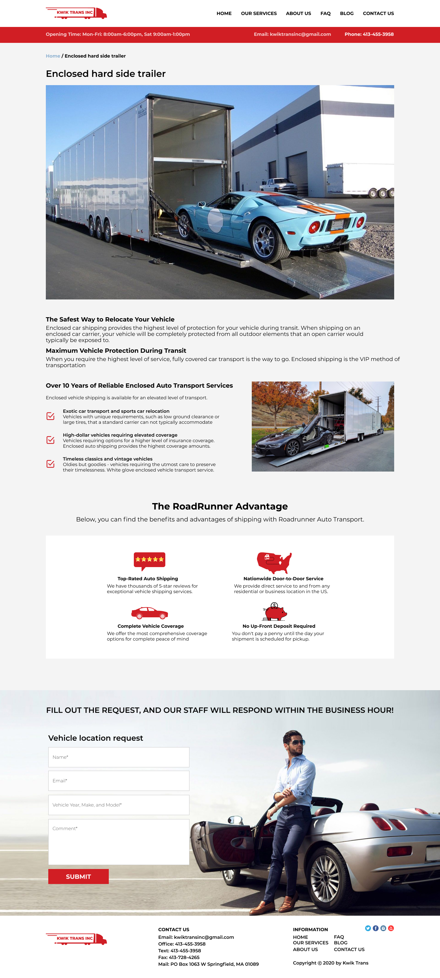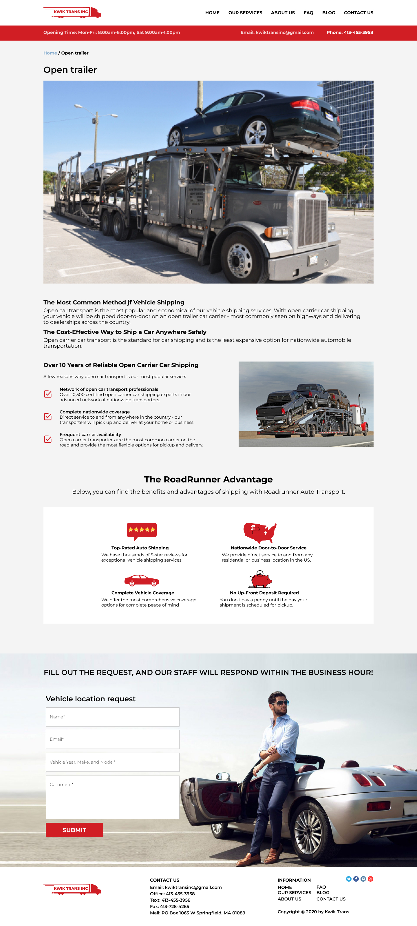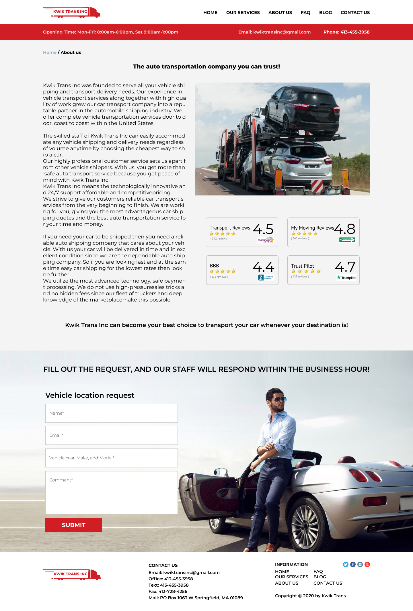 Закажите готовый продающий сайт визитка #223 в Обнинске за 5-7 дня «под ключ»: свёрстан, отрисован и готов к рекламе. Тематика шаблона «Safe & Reliable National Auto Transport».